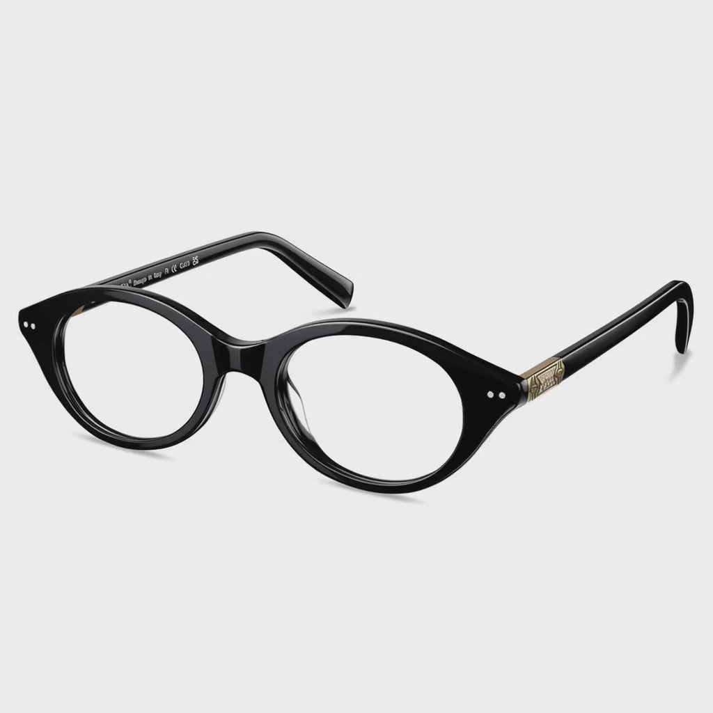 Carfia Black Oval Acetate Eyeglasses Italian Design Women's Frames-angle
